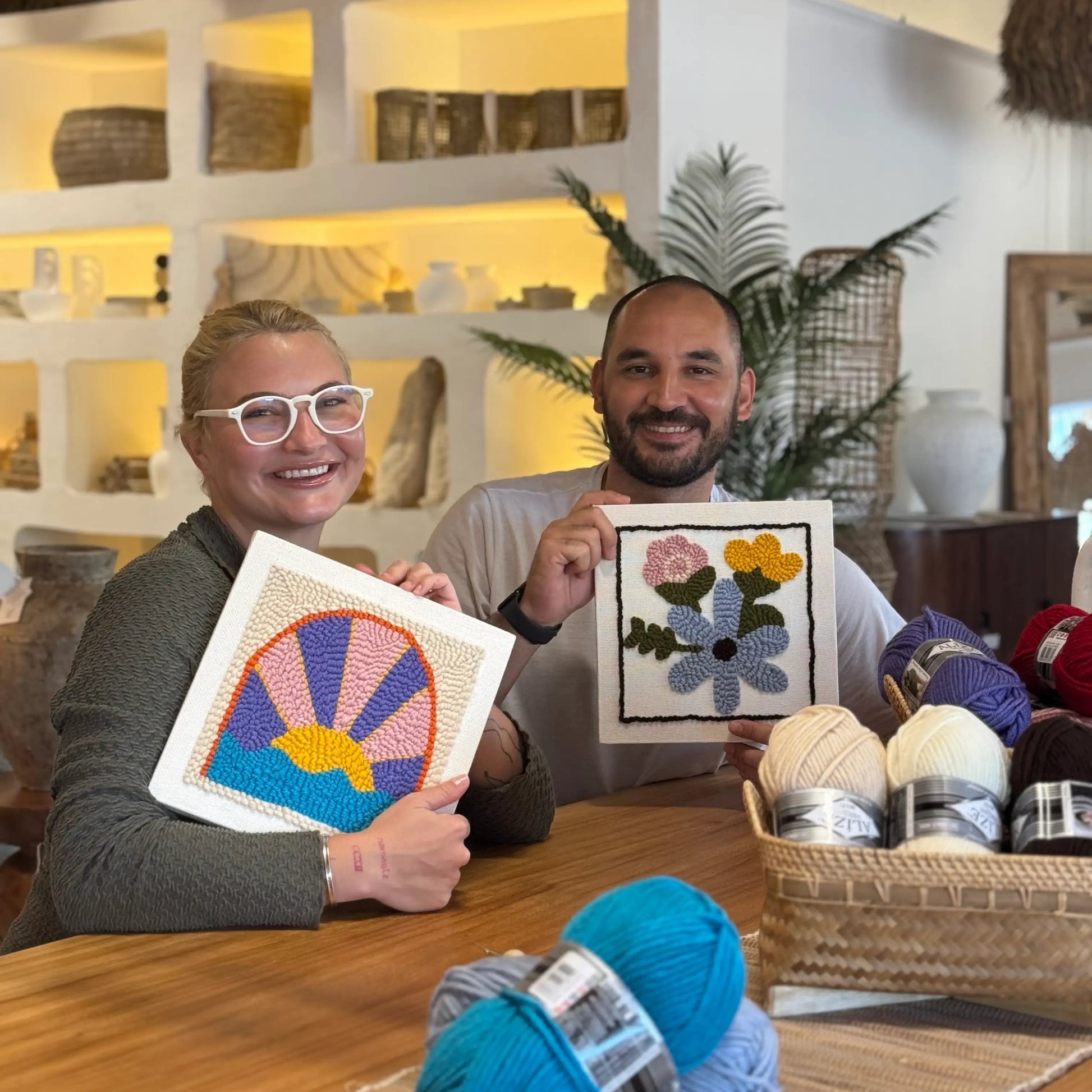 Join our punch needle class and craft your own unique design step by step. Watch as your handmade piece comes to life with beautiful textures and colors.
