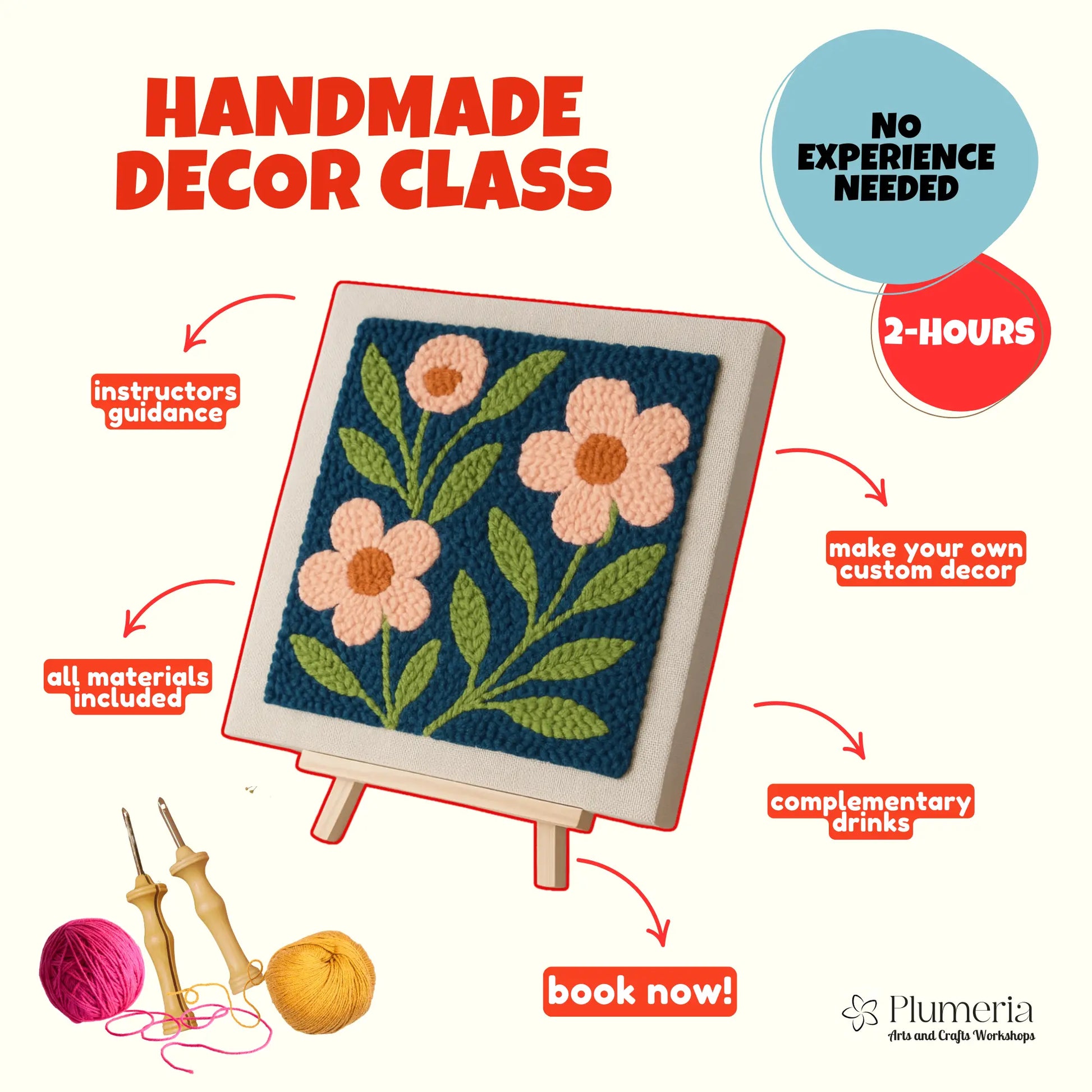 Join our punch needle class and craft your own unique design step by step. Watch as your handmade piece comes to life with beautiful textures and colors.